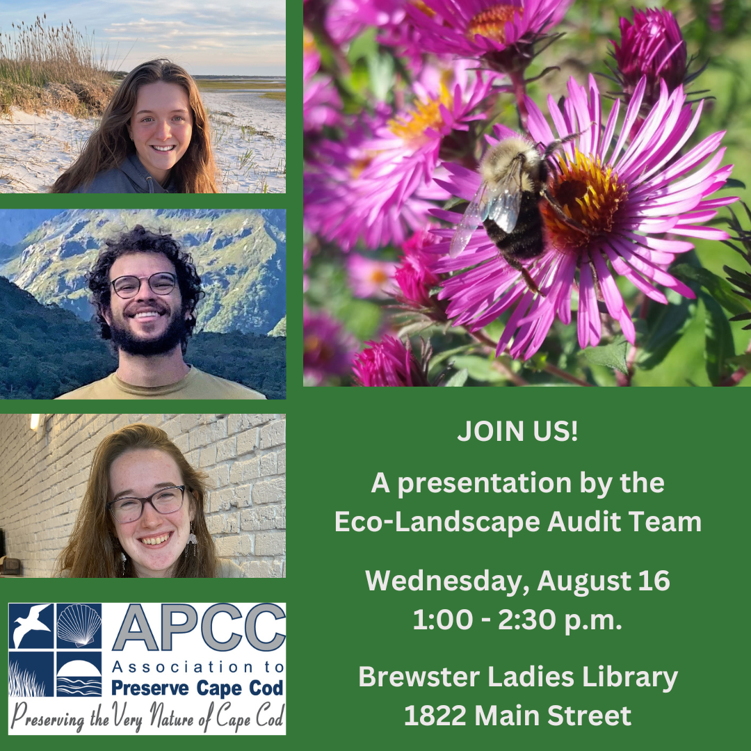 - APCC Special Recognitions: Nancy Horn & Chris Dennis, Friends of Peter’s Pond; Nauset Garden Club & Pollinator Pathway Cape Cod, Carol Alper & Gary Bowden