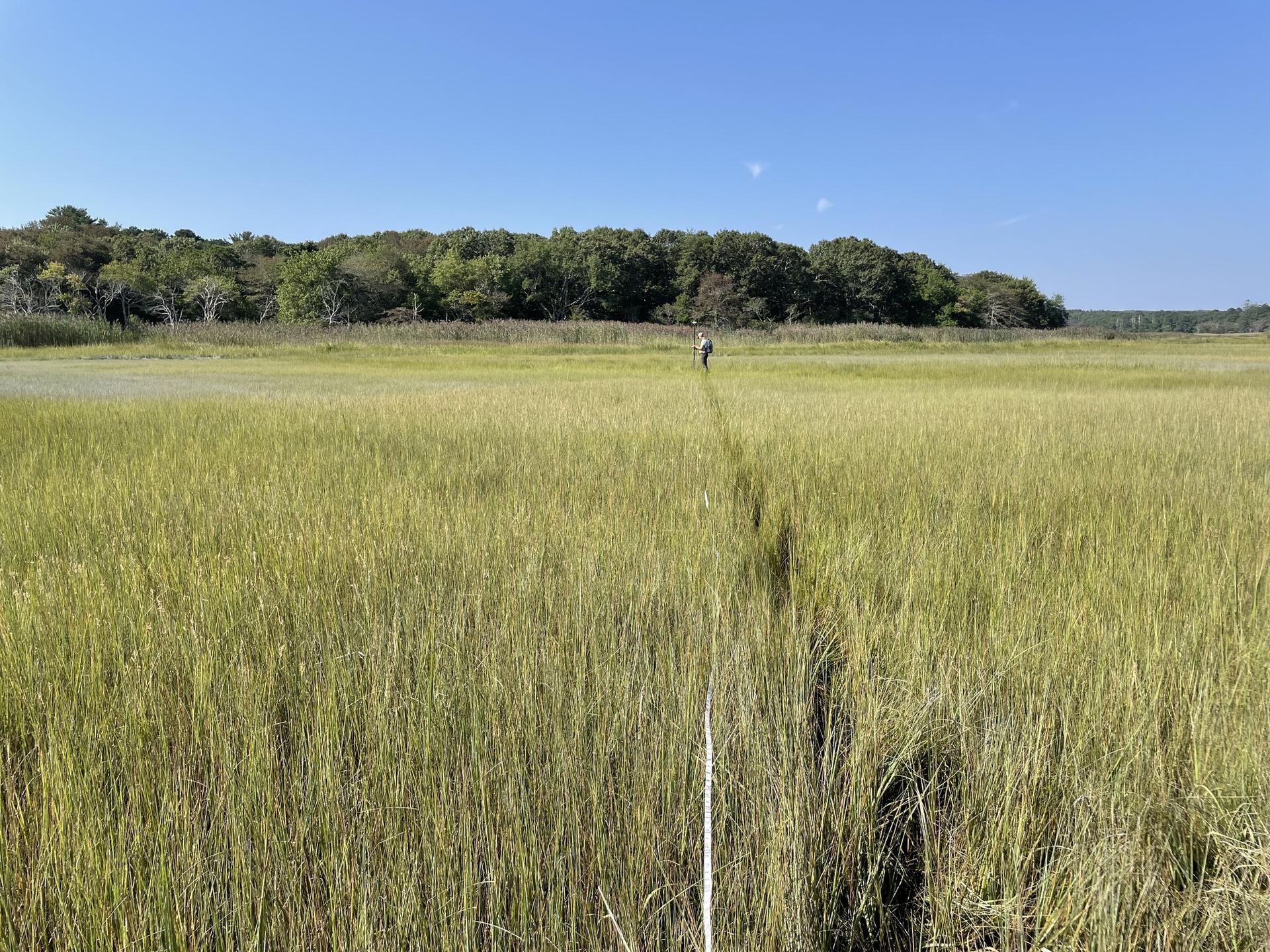 Large pools on the salt marsh platform like this will be monitored to track change over time with sea level rise and restoration. |