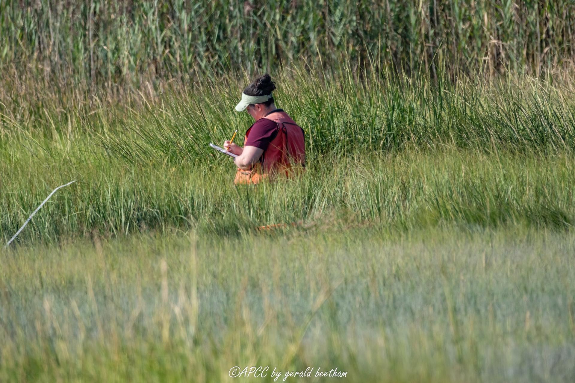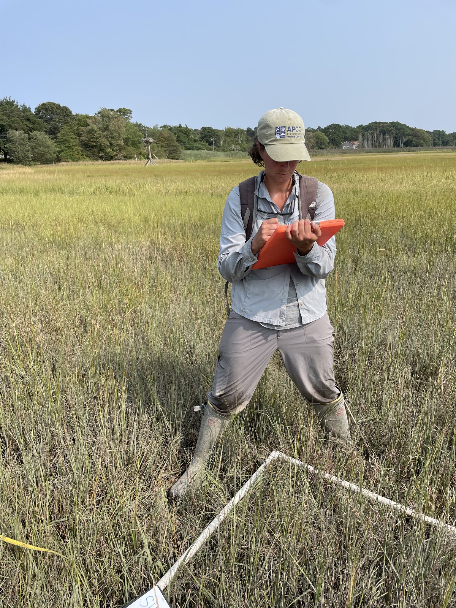 APCC spent last week completing pre-restoration monitoring of the Scorton Creek salt marsh in Sandwich (upstream and downstream of Jones Lane). We monitored and mapped the location of big cord grass, Spartina cyanosuroides (a state threatened species) and observed several salt marsh sparrows (a species of special concern) as well as other salt marsh gems like salt marsh asters, coffee bean snails, and nests of marsh wrens.
