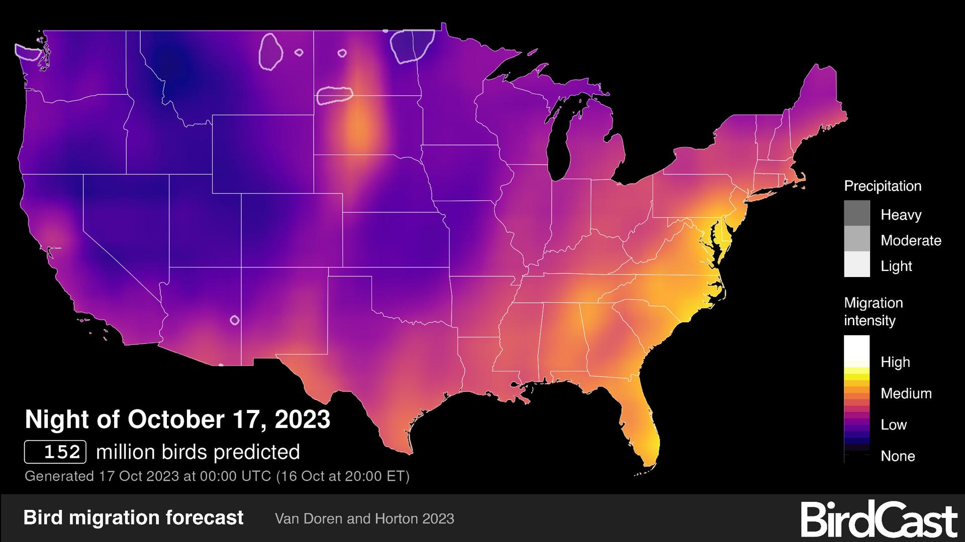 BirdCast provides these bird migration tools using US. Data from weather surveillance radar and years of data. |