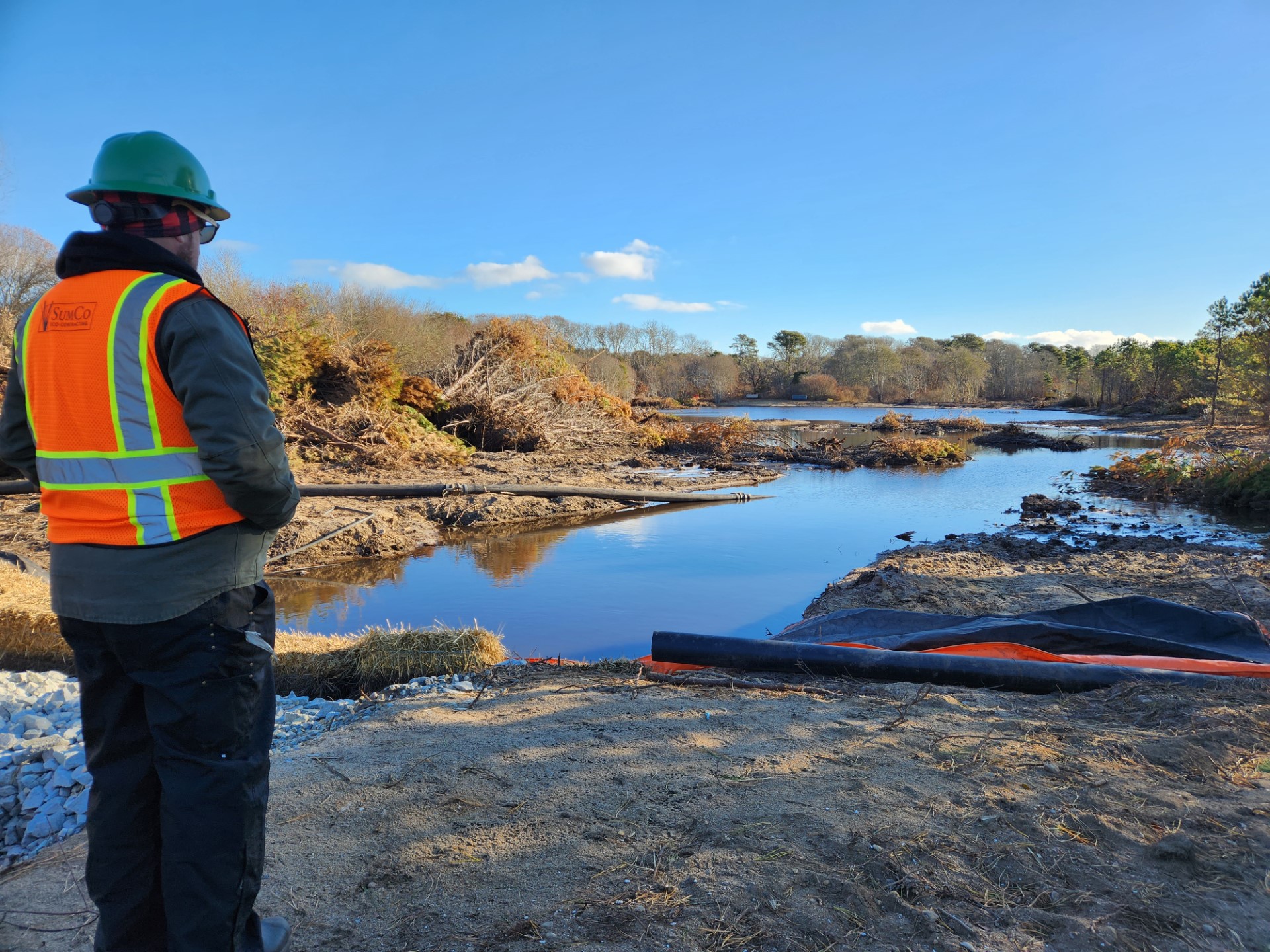 APCC staff was hosted by Harwich Conservation Trust (HCT) last week to tour the Cold Brook Eco-Restoration Project, now underway in Harwich. |