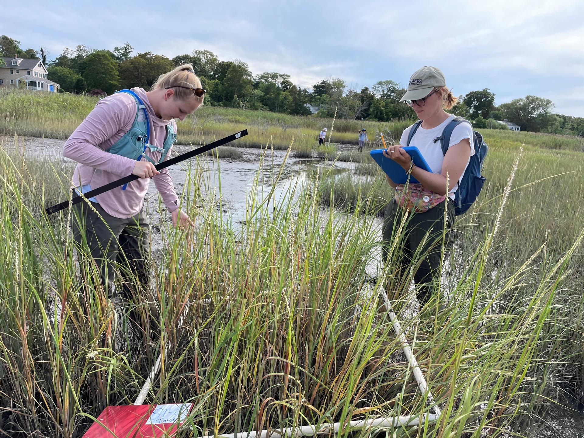 Site visit at Jones Lane, Scorton Creek Marsh, Sandwich. APCC's ERP was contracted by the Cape Cod Conservation District at vegetation plots in the Scorton Creek Marsh from July - October. Plans are to replace the culvert where Jones Lane crosses Scorton Creek in Sandwich.