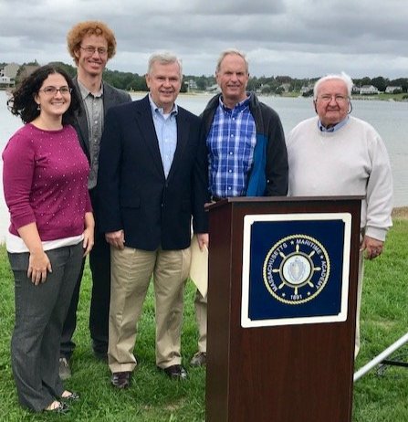 One of April’s most significant projects, which kicked off her tenure with APCC, was the Three Bays Stormwater Project in Barnstable. This six-year, two million dollar project, funded by EPA Southeast New England Program and Massachusetts Office of Coastal Zone Management, completed assessment and prioritization across the watershed and included construction at top priority sites. Upon completion in 2022, a total of nine green stormwater infrastructure systems were installed to prevent excess pollutants like nitrogen and bacteria from draining into the bays. April secured funding and worked closely with the town of Barnstable, Horsley Witten Group, and multiple local community partners to plan and implement the project. This project helped to lay the framework for our ongoing stormwater management projects to address runoff at priority public boat ramps and, working with the town of Yarmouth, to plan, design and install stormwater systems at priority sites.