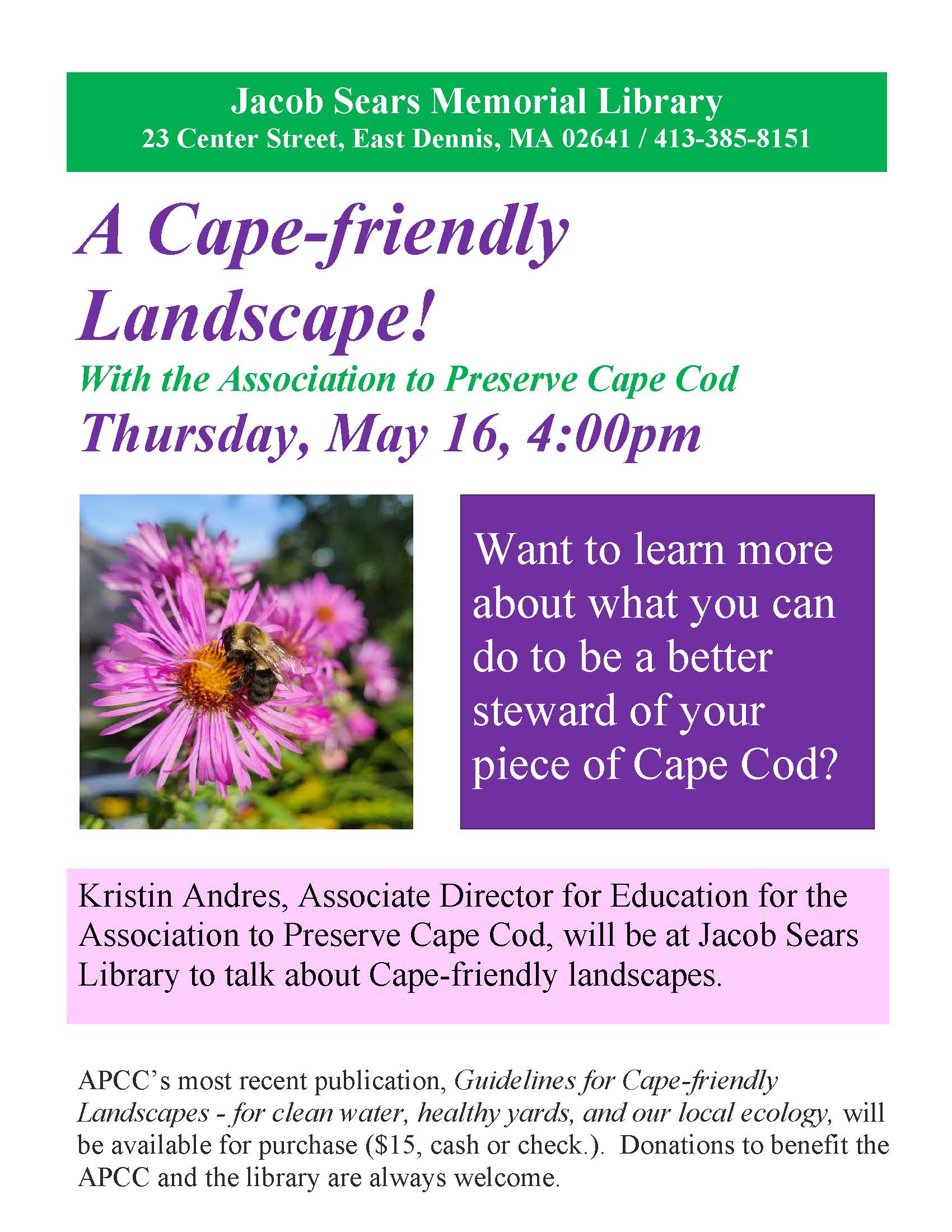 Webinar hosted by Falmouth Ponds Coalition in cooperation with Friends of Peter's Pond and Save Mashpee-Wakeby Pond Alliance "Cape-friendly Landscapes ~ an ecological approach" Today, Wednesday, May 1, 4:30-5:30 p.m.