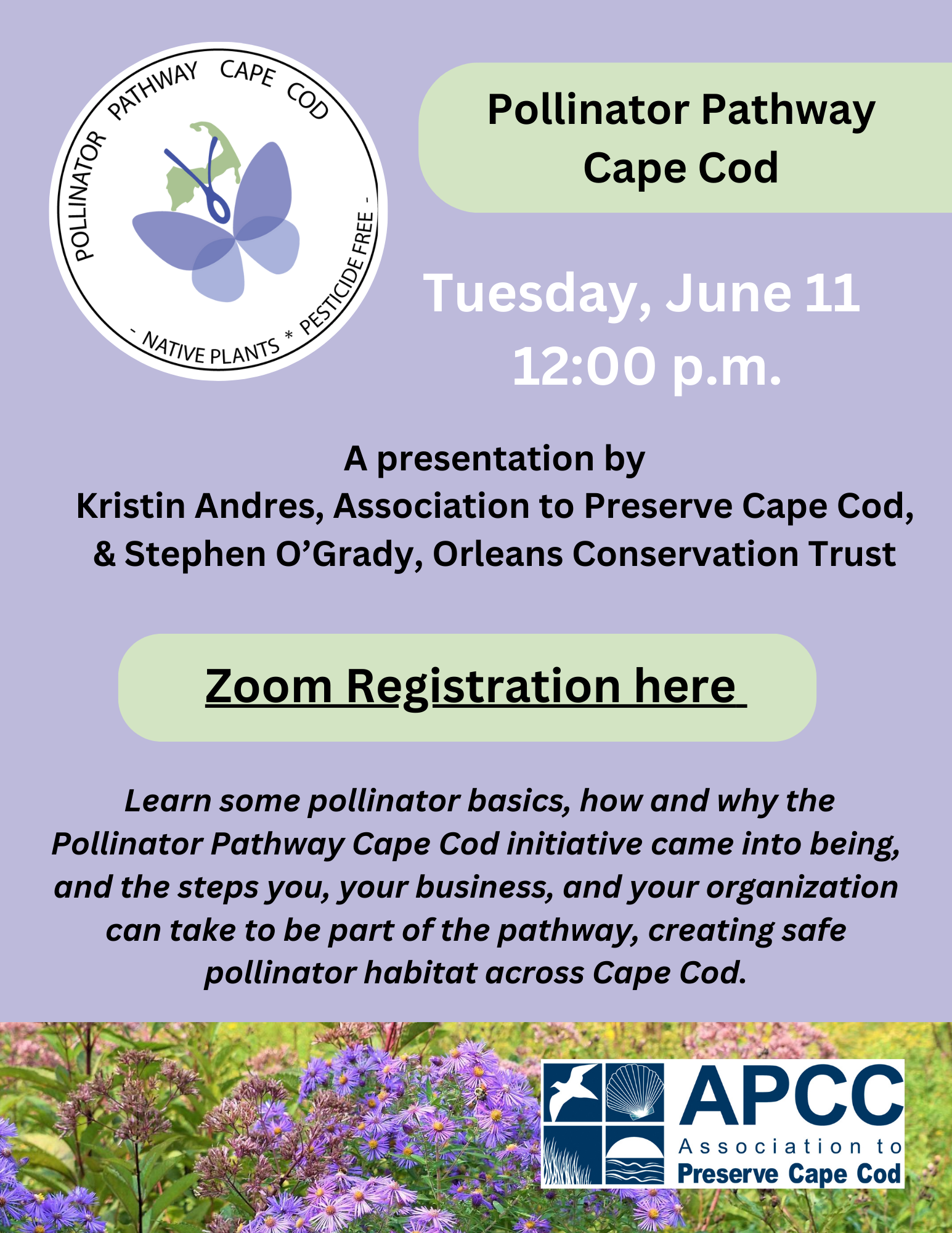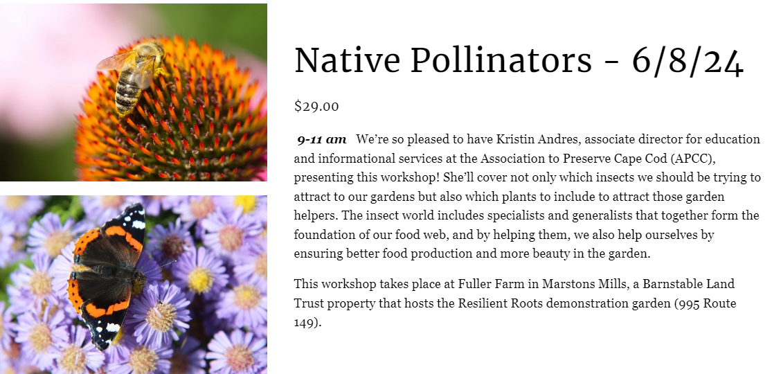 The Pollinator Pathway Cape Cod is a group of organizations promoting native plants and pollinator-friendly land care practices to create a boat load of safe oases for our native bees, butterflies and a whole host of other pollinators that are crucial to the health of our ecosystems.