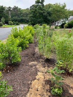 I cheated a bit with a couple of foxgloves, but most of the rest are all native. The hedge in the front is all bayberry now. I am trying something similar to an English border, but with all Cape Cod natives flowing towards my house. The bayberry hedge will hide the perennials as they grow in the spring, making the yard look neater for my neighbors. I am already taking cuttings to root for next year making the border wider.