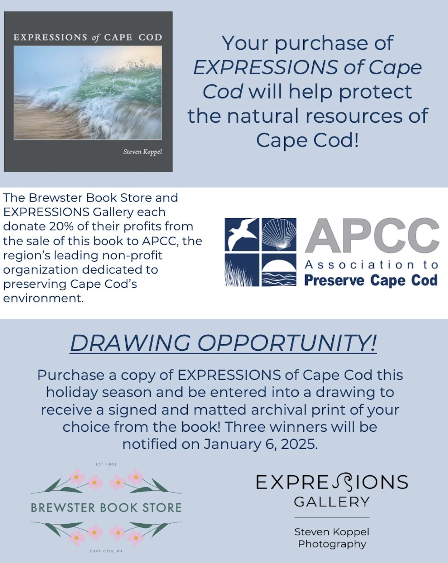 We are grateful for the several retail shops that are partnering with us to make this publication more widely available: Brewster Book Store, Birdwatchers General Store, Crocker Nurseries, Wellfleet Audubon Wildlife Sanctuary, Cape Abilities Farm, Cape Cod Museum of Natural History, the Cape Cod Lavender Farm, Heritage Museums and Gardens, Titcomb's Bookshop, Sea Howl Bookshop, Soares Flower Garden Nursery, and Eight Cousins Bookshop.