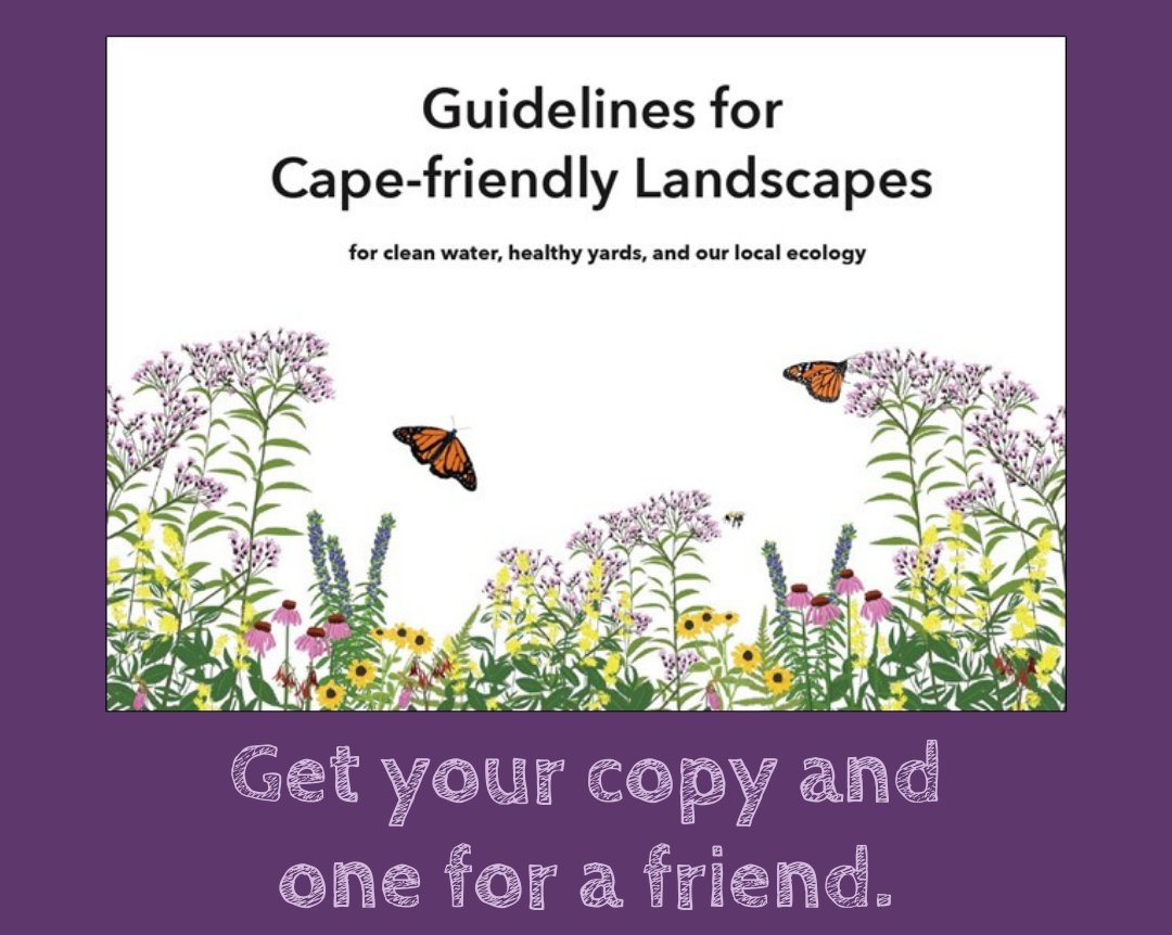 The Guidelines gives homeowners steps they can take in the design and maintenance of their properties that will support pollinators and birds, manage stormwater, conserve water, and protect the Cape's water quality. This 40-page booklet is beautifully illustrated by Marcy Ford with content that is easily digestible and supported by numerous resources for additional learning.