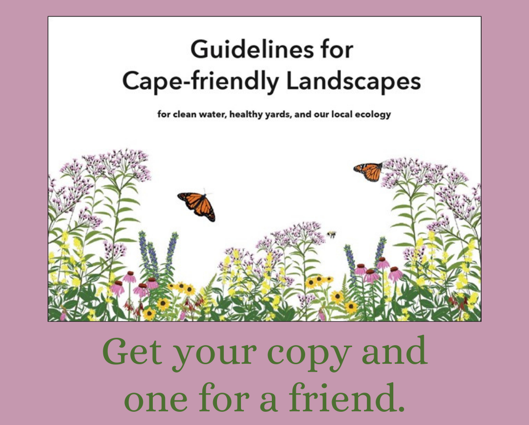 The Guidelines gives homeowners steps they can take in the design and maintenance of their properties that will support pollinators and birds, manage stormwater, conserve water, and protect the Cape's water quality. This 40-page booklet is beautifully illustrated by Marcy Ford with content that is easily digestible and supported by numerous resources for additional learning.