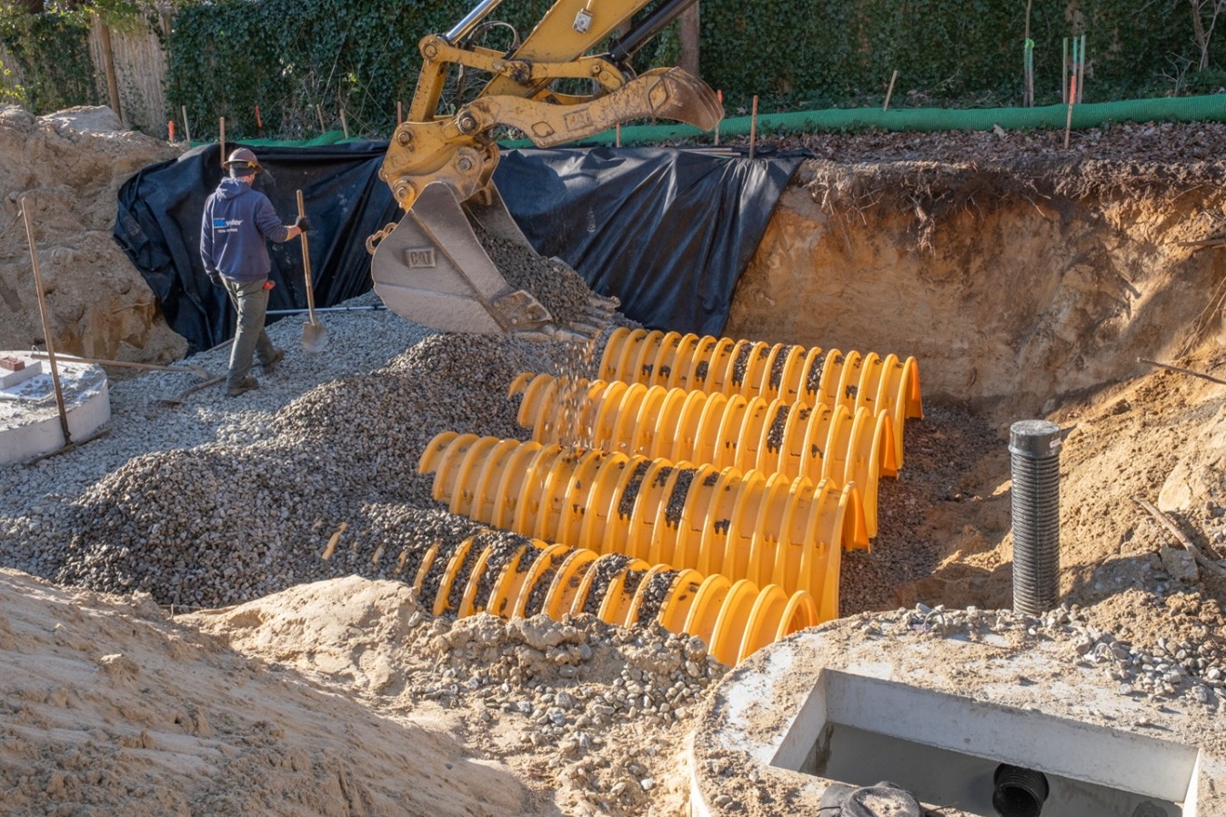 Above: A series of infiltrating chambers being installed underground at the Route 6A Scargo Lake town landing. Photo credit: Gerald Beetham |