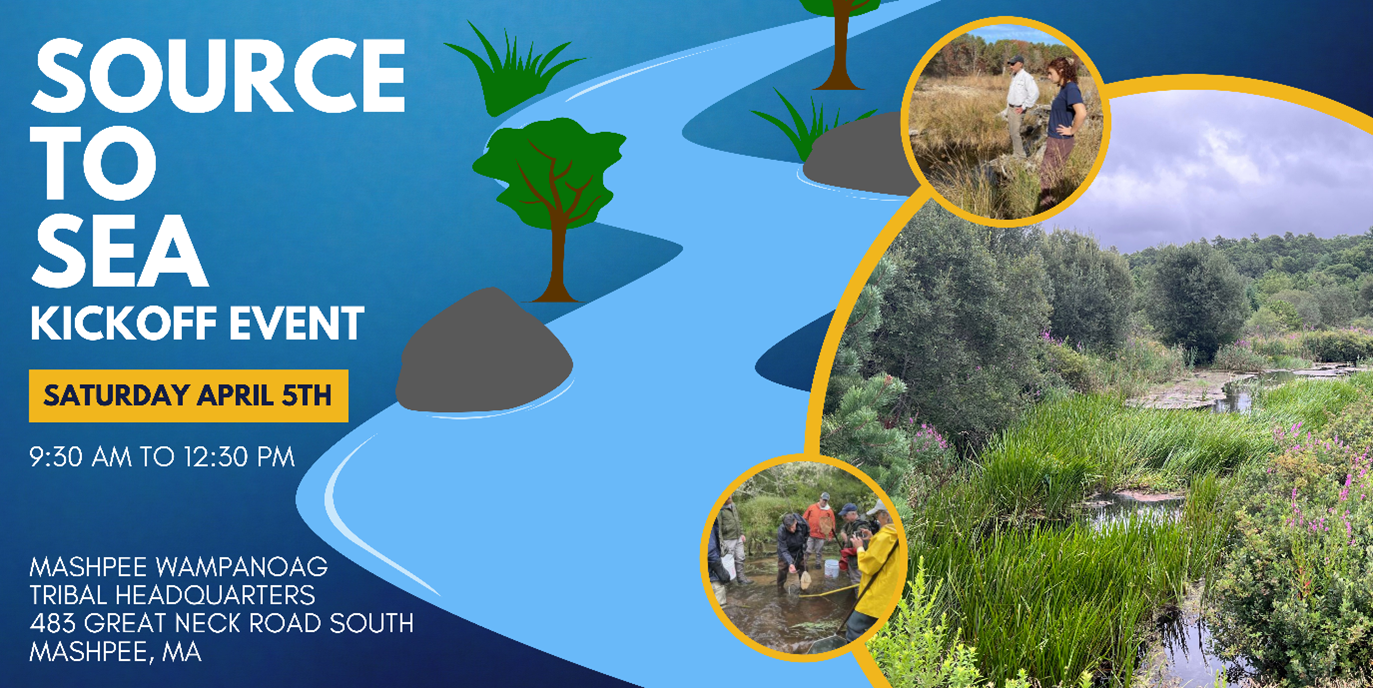 Join us in restoring Red Brook, Upper Quashnet River, and Mashpee River as part of the Source to Sea initiative! On Saturday, April 5, 2025, from 9:30 a.m. to 12:30 p.m., APCC and our partners will host a public kickoff event at the Mashpee Wampanoag Tribal Headquarters. The event will bring together community members and the technical project teams to learn about the opportunity for community input to help shape the future of these vital waterways.