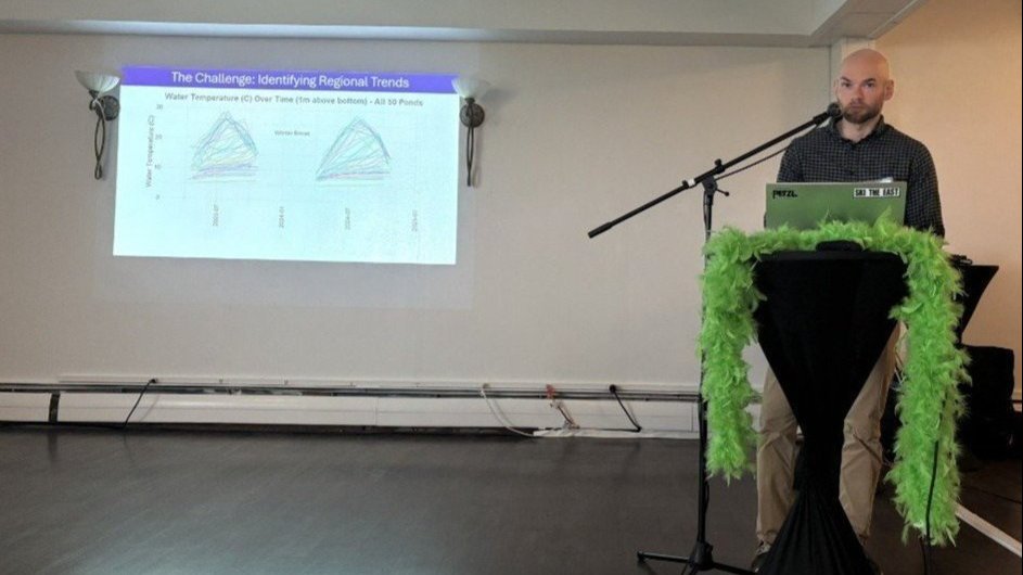 | Above: JT Percy, APCC senior pond monitoring technician, presenting a talk on the Cape Cod Regional Pond Monitoring Program. |