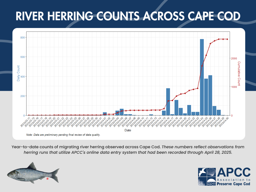 Work continues at the Harwich Conservation Trust’s (HCT) Hinckleys Pond—Herring River Headwaters Eco-Restoration Project. APCC is excited to help support this project through final permitting, construction and monitoring with funding from the NOAA Restoration Center.