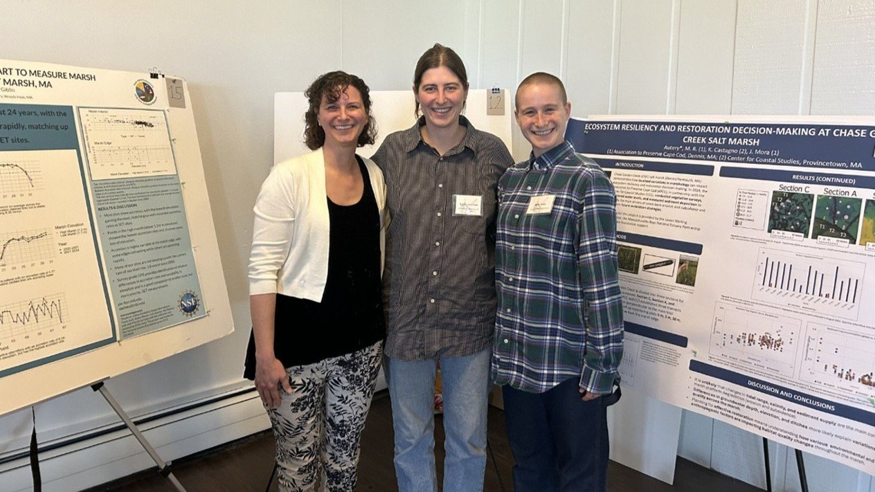 Jordan Mora, APCC lead ecologist and science advisor, presented a talk on the Weir Creek restoration project entitled, Hurdles, Hoops, and a Bit of Hopscotch: Navigating Adaptive Management Considerations for Tidal Restoration Projects on Cape Cod, highlighting APCC's Ecosystem Restoration Program’s monitoring progress and lessons learned at Weir Creek. Molly Autery, APCC salt marsh specialist, presented a poster on the Chase Garden Creek restoration project titled Ecosystem Resiliency and Restoration Decision-Making at Chase Garden Creek Salt Marsh, displaying APCC’s fieldwork methods and preliminary data analyses.