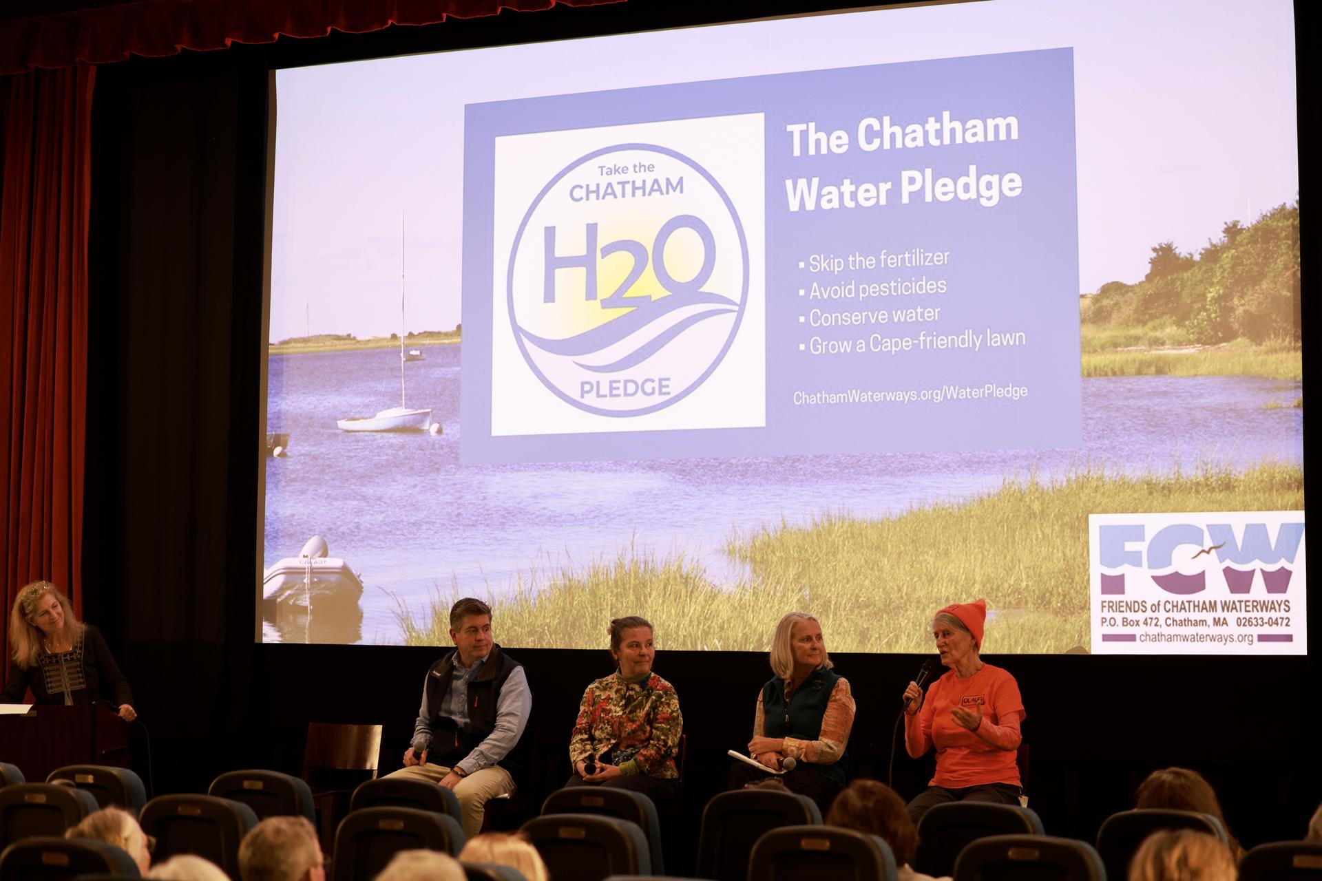 Kristin Andres, APCC associate director for education, was a panelist for Saving Chatham's Waters, along with Rob Faley, Chatham DPW director, Renee Gagne, Chatham shellfish constable, Susan Baur, founder of Old Ladies Against Underwater Garbage. The event was held at the Chatham Orpheum and hosted by Friends of Chatham Waterways. |