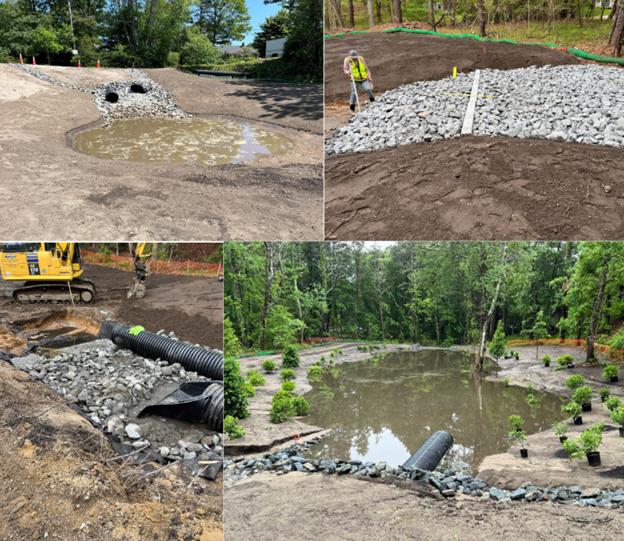 Construction is now complete at two high-priority stormwater improvement sites in Yarmouth: Standish Way and Curve Hill Road. These projects feature newly installed green infrastructure designed to improve water quality in nearby waterbodies and enhance habitat for fish and shellfish.
