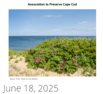 The Compact of Cape Cod Conservation Trusts (“the Compact”) and its nonprofit members launched a new regional calendar of events. The Conservation Calendar includes programs across Cape Cod hosted by these groups. The goal of the calendar is to encourage visitors and residents to take part in nature and environmental events. You can always find the link to the calendar on APCC's website under News & Events.