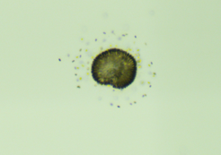 Woronichinia is made up of small green circles similar to Microcystis, which means that the two are often confused with each other. Although for the most part, they look noticeably different, as Woronichinia has a dense, darker green border and mainly form circular clumps surrounding clear mucilage center. This genus can produce cyanopeptides. |