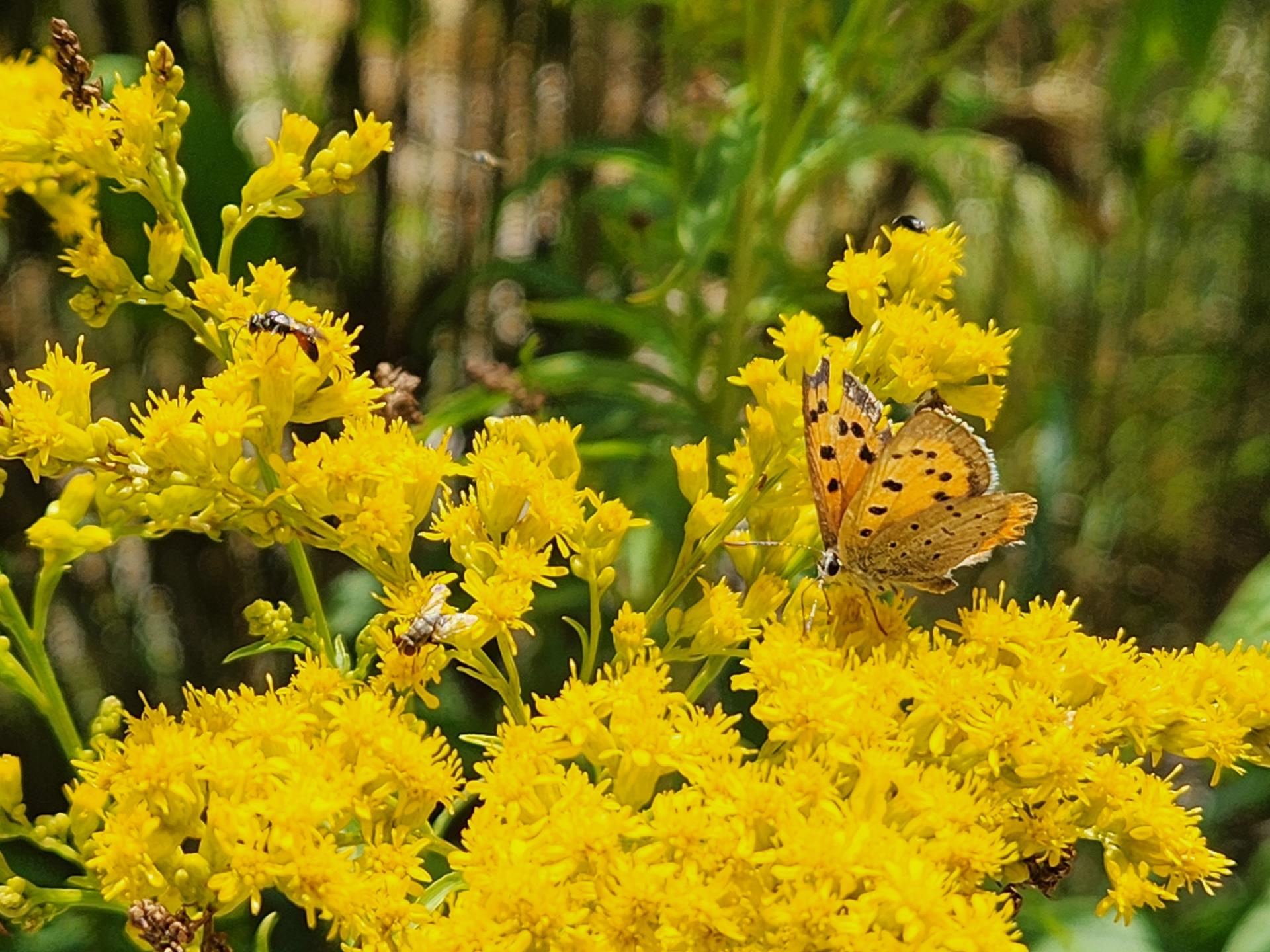 Above: American copper butterfly and various other insects grabbing some nectar from goldenrod. |