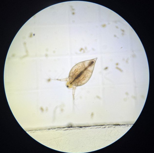 The genus Daphnia includes more than 100 known species of freshwater plankton organisms found around the world, but the most common species found floating around the waters of the Cape is Daphnia pulex. As for that armor, Daphnia use antenna-like structures on the top of their head to detect scents and chemicals released by predators, such as fish or other invertebrates, and subsequently grow sharp tails and armor-like “helmets” on their head in response to threats they expect to face.