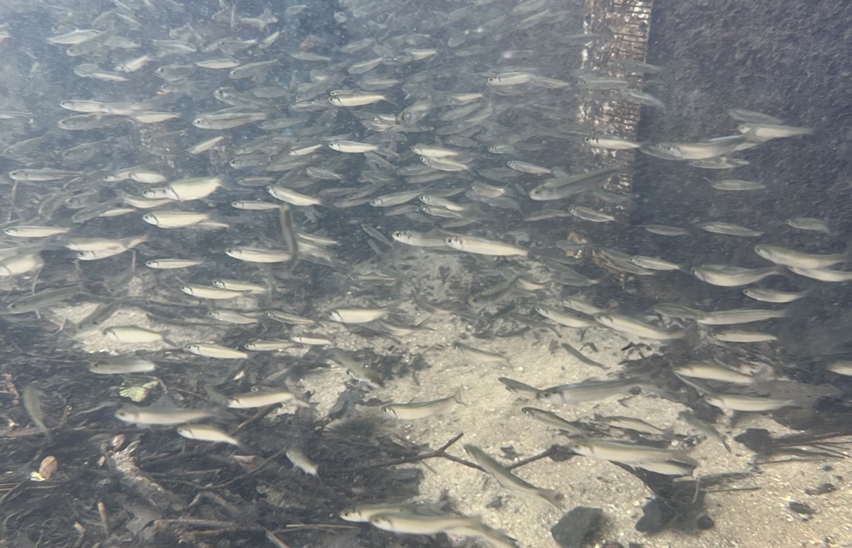 Above: Juvenile river herring spotted at Mashpee River during the most recent temperature check. |