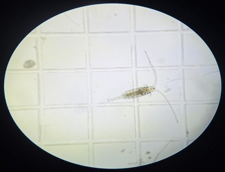 Why the cow comparison? Well, a main reason is that just as cows graze on grass, copepods graze on phytoplankton and convert the sun's energy into food for high trophic levels in the food web. And, boy, do copepods eat! In fact, a single copepod can eat between 11,000 and 373,000 diatoms (a type of phytoplankton) in 24 hours! To do so, the clever crustaceans use their antennae to create water currents that then deliver the food right to their mouths. Copepods aren’t fussy and will happily devour a wide variety of phytoplankton and other small zooplankton, even the daphnia we talked about in a recent newsletter.
