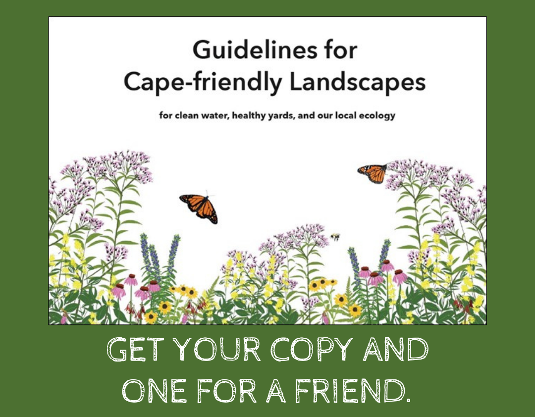 The Guidelines gives homeowners steps they can take in the design and maintenance of their properties that will support pollinators and birds, manage stormwater, conserve water, and protect the Cape's water quality. This 40-page booklet is beautifully illustrated by Marcy Ford with content that is easily digestible and supported by numerous resources for additional learning.