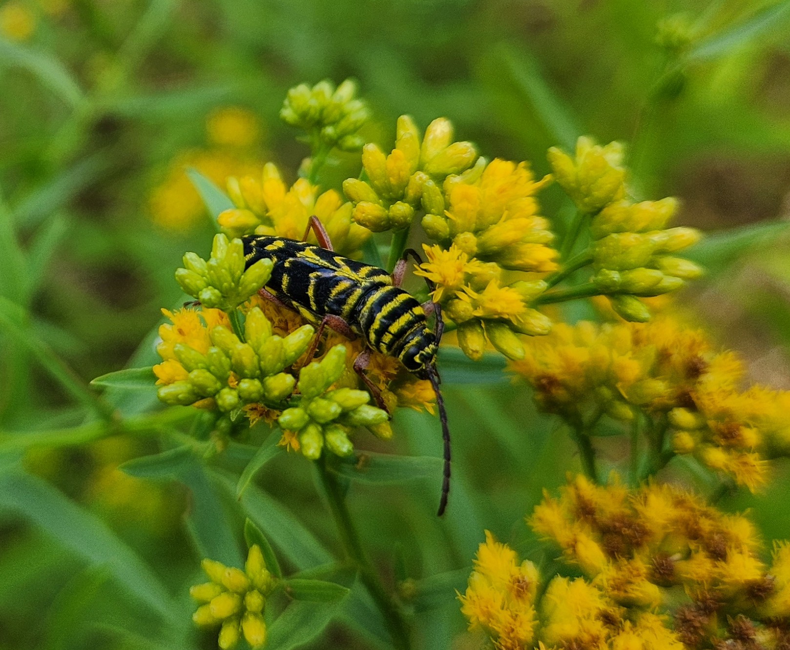 Above: Locust borer beetle, Megacyllene robiniae, a species of longhorn beetle endemic to eastern North America |