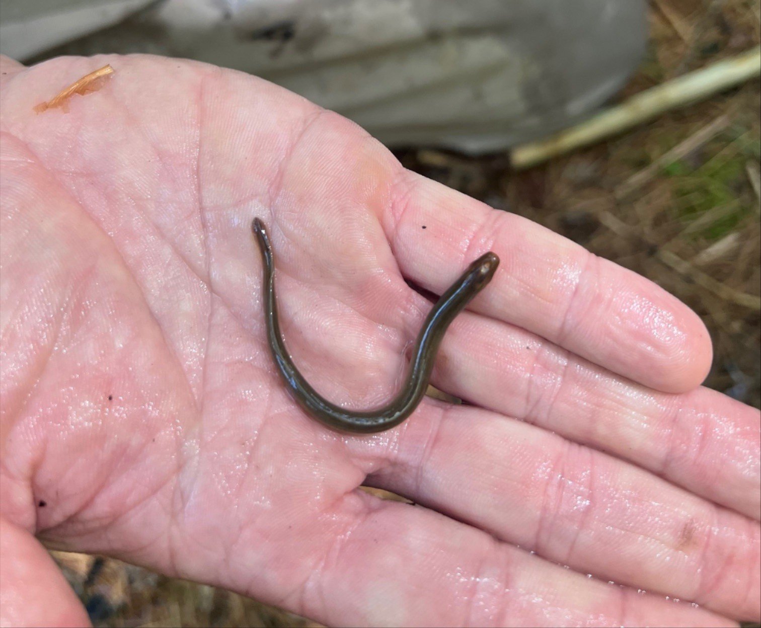 Above: An American brook lamprey ammocoete, or larva, recently caught in the Mashpee River. |