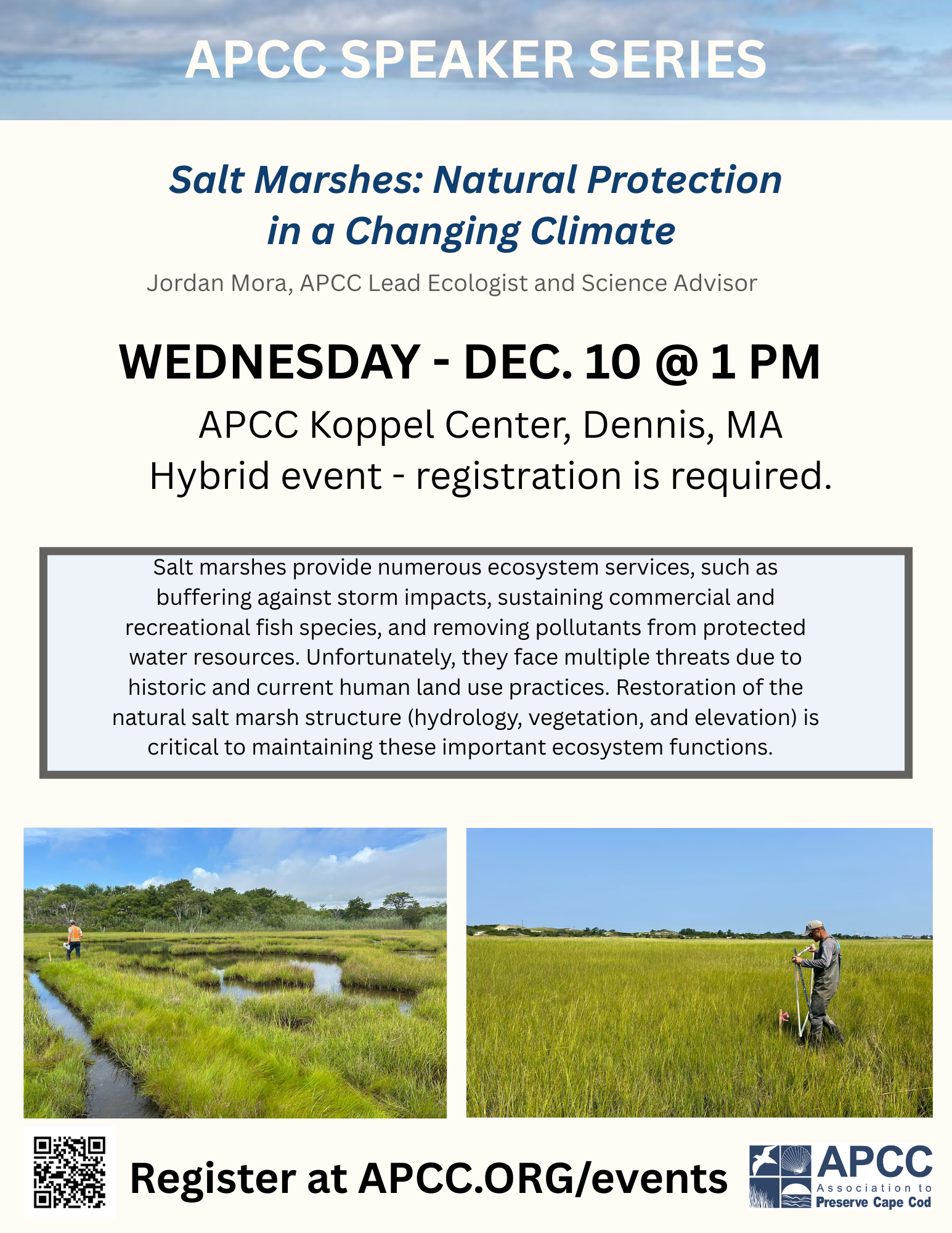 After three years of study, APCC is now ready to move into the design phase of restoration. This stage involves mapping out where and how to act—matching project goals and desired outcomes with the most effective restoration methods, identifying priority areas within the marsh, and establishing how success will be measured over time. It also includes working through local and state permitting to ensure the work meets all regulatory requirements.