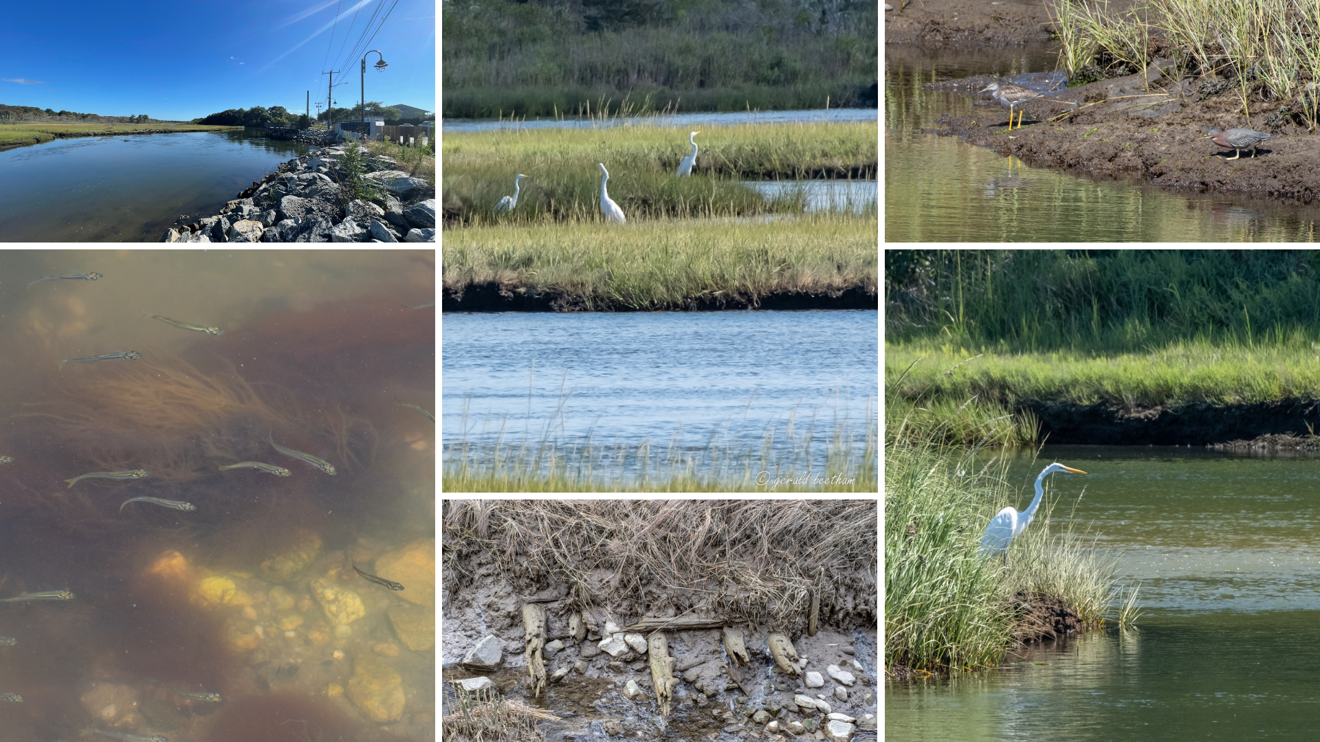 Above: Salt marsh scenes collected from Cape Cod. Photo credits: Gerry Beetham and Cristina Kennedy (DER) |