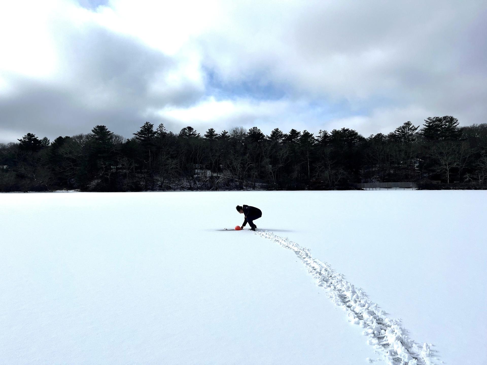 Right now on Cape Cod, most of our ponds are frozen with a thick layer of snow on top that is restricting the amount of light for the tiny plants (phytoplankton and cyanobacteria). The larger deeper ponds have a greater reservoir of oxygenated water to sustain pond life, but with little light the balance of oxygen produced and the amount used by consumers respiring is thrown off. Perhaps the holes created in the ice by cold hardy fishermen to drop a line may actually provide a breath of fresh air to a shallow pond with otherwise oxygen-depleted water. APCC looks forward to getting out on the ponds in canoes to document the oxygen conditions as soon as we can in March, as part of the Cape Cod Regional Pond Monitoring Program with the Cape Cod Commission. |