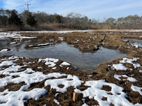 In January, staff from Tighe & Bond joined us at Weir Creek salt marsh to measure elevation along several transects—through shallow pools and across the marsh surface. Elevation may sound like a small detail, but in a salt marsh, a few inches can make a big difference. It helps determine how often areas flood, how long water lingers, and where marsh plants can thrive. Tracking these subtle shifts over time is one of the best ways to understand how marshes are changing—and how to protect them. Because even when the marsh looks frozen and quiet, it’s still working hard for Cape Cod.